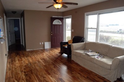 With some late nights, early mornings, and help from friends (Thank You Rick P and Ken K!) We now have hardwood floors installed on the main level of the house. Yipee!!