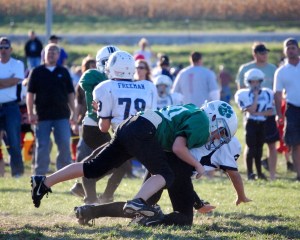 I missed his first football game today because I was at a conference in Salina. It happens every year when I go to this conference. They won today 14 to 0 (I hope that means he lets me come to the next game.) I love this time of year and going to the games. I spend most of my time following the boys up and down the sideline taking pictures. That is what this one is. Of course it’s from last year. But he picked it out, for obvious reasons.